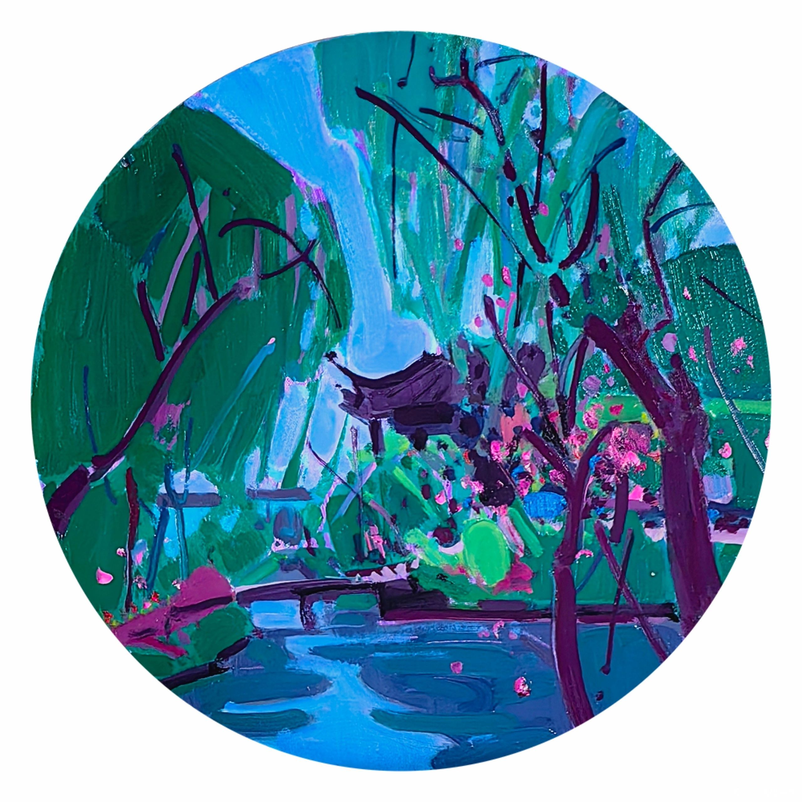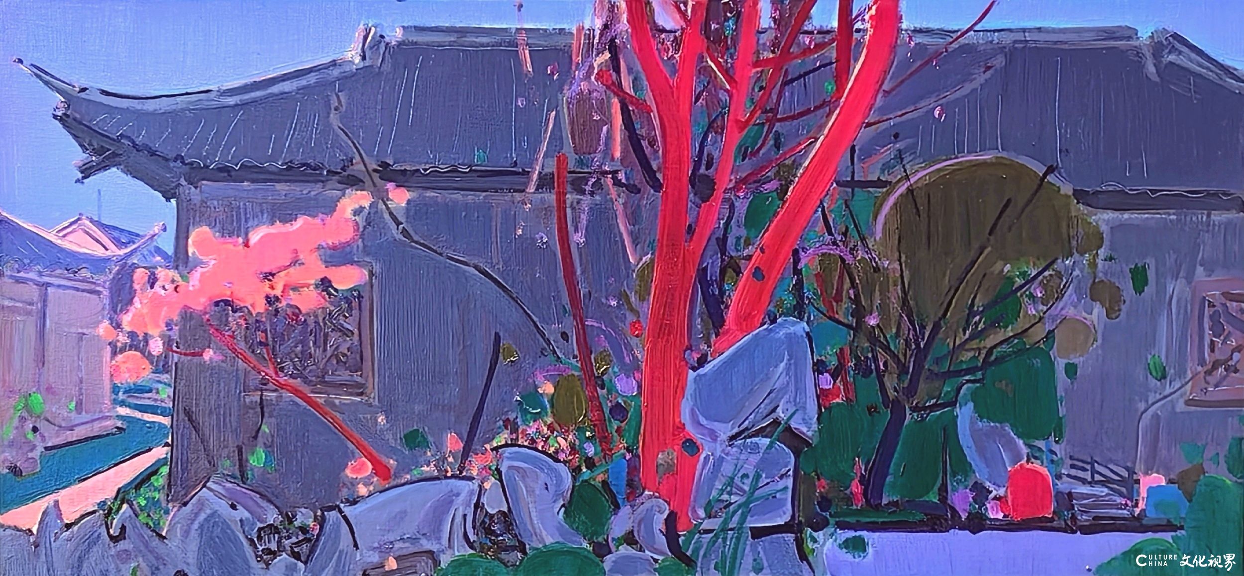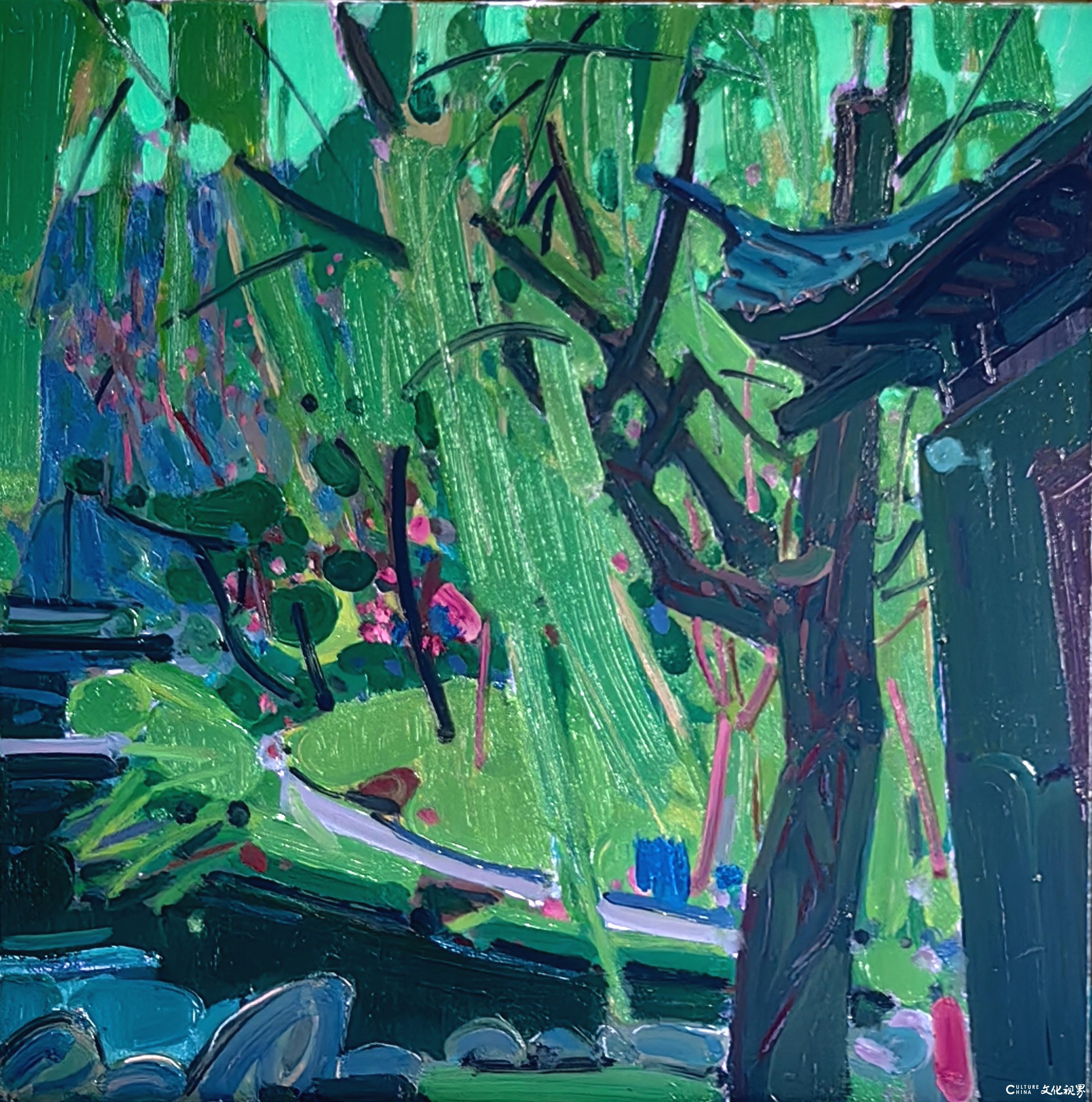 笔触的运用是宋永进油画的另一大特色。他的笔触灵动多变,时而粗犷奔放,以厚重的油彩堆砌出强烈的肌理感,让画面充满力量与生命力;时而细腻柔和,以轻盈的笔触勾勒出物象的灵动姿态,尽显含蓄婉约之美。笔触的快慢、轻重、疏密在画面中形成巧妙的平衡,既塑造了坚实的形体,又保持了画面的通透与呼吸感。这种富有表现力的笔触,使得作品摆脱了对物象的机械模仿,呈现出鲜明的写意性与书写感。